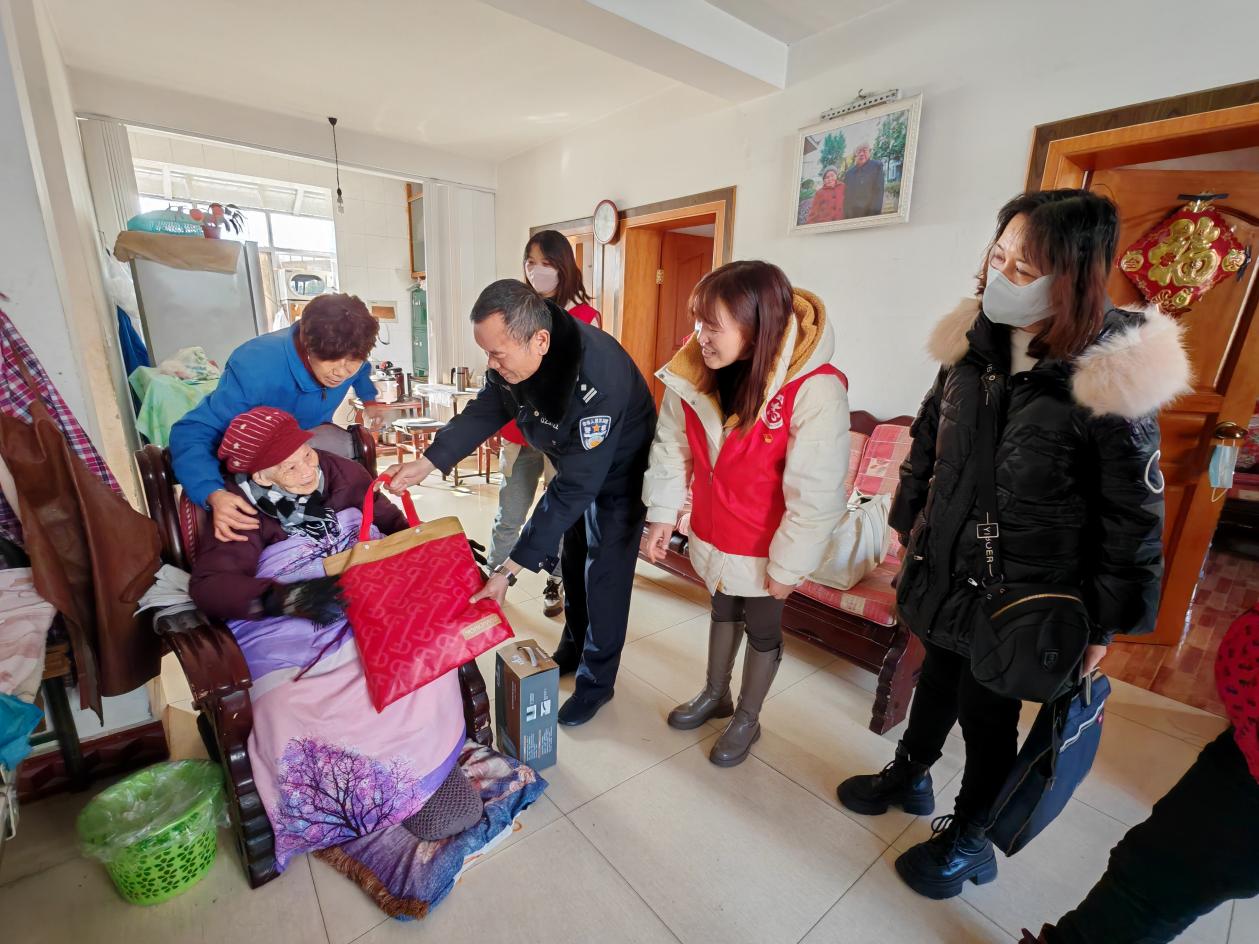 走访慰问见真情。在100岁高龄老人杜秀芳家中,志愿者们与老人亲切交谈仔细询问日常起居、健康状况、家庭成员等情况。看到老人身体健康、子女孝顺,社区十分欣慰,鼓励老人保持乐观向上的心态、保重身体,并细心叮嘱家人要照顾好老人的生活。志愿者们为老人送去过冬的棉被和日用餐锅,陪他们拉家常、舒缓心情。白石江派出所也向老人及他的家人面对面普及法律援助知识,提高群众维护自己的合法权益意识。