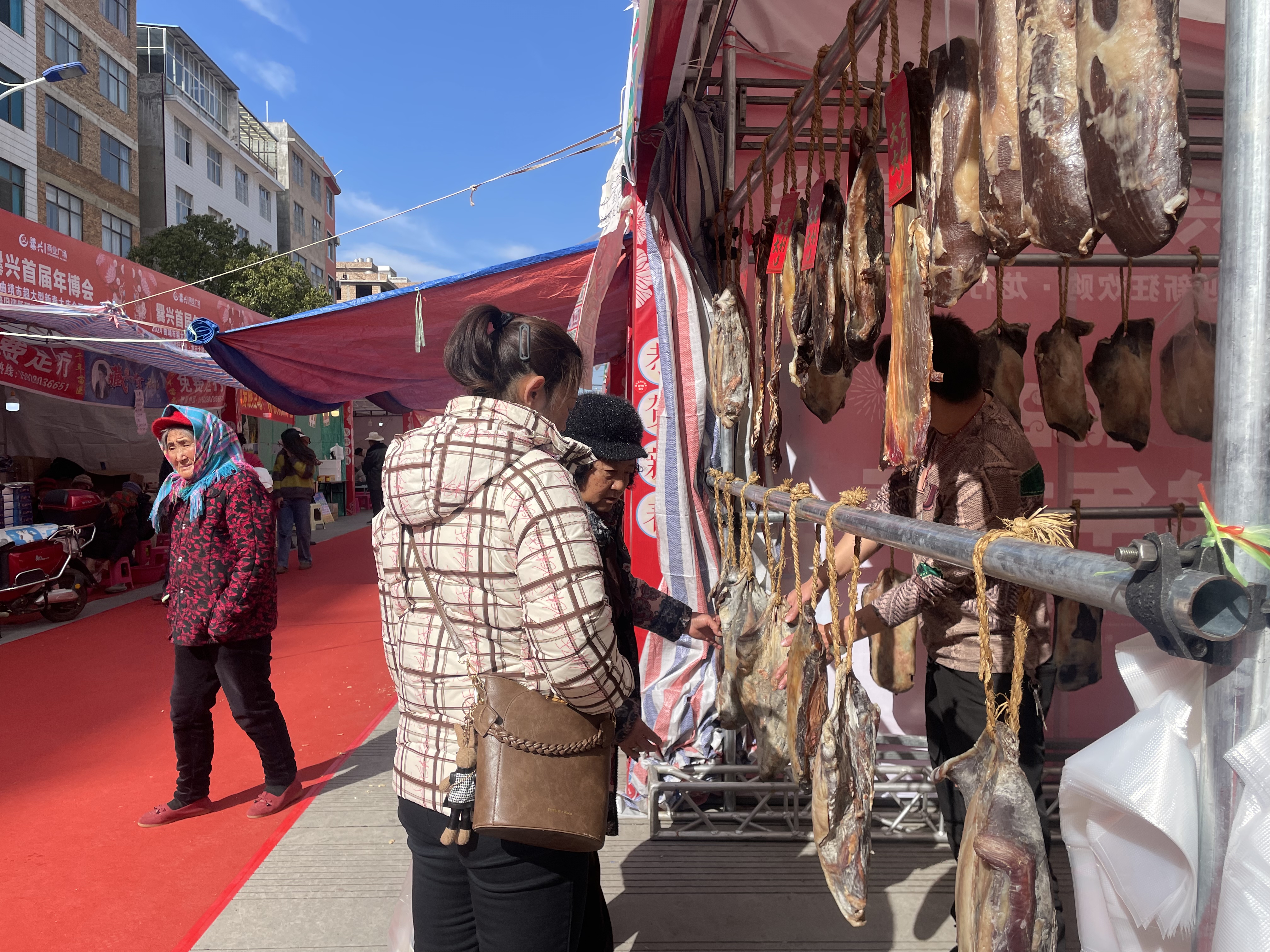 在肉香四溢的牛干巴摊位前,摊主刘老板正热情邀请路过的市民品尝。“我们起早贪黑不仅是为了生活,也为了群众能买上自己满意的年货,过一个热热闹闹的春节。”