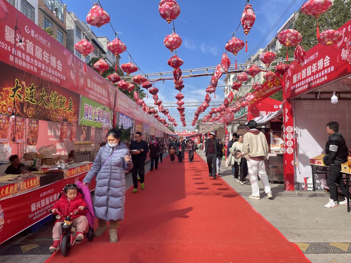 据悉,本次爨兴年博会共设置了100余个摊位,消费者边走边逛、货比三家,经营者热情招待、卖力吆喝,来到年货街,就能够享受到“一站式”采购年货的方便,共同感受到欢乐、祥和、喜庆的春节氛围。
