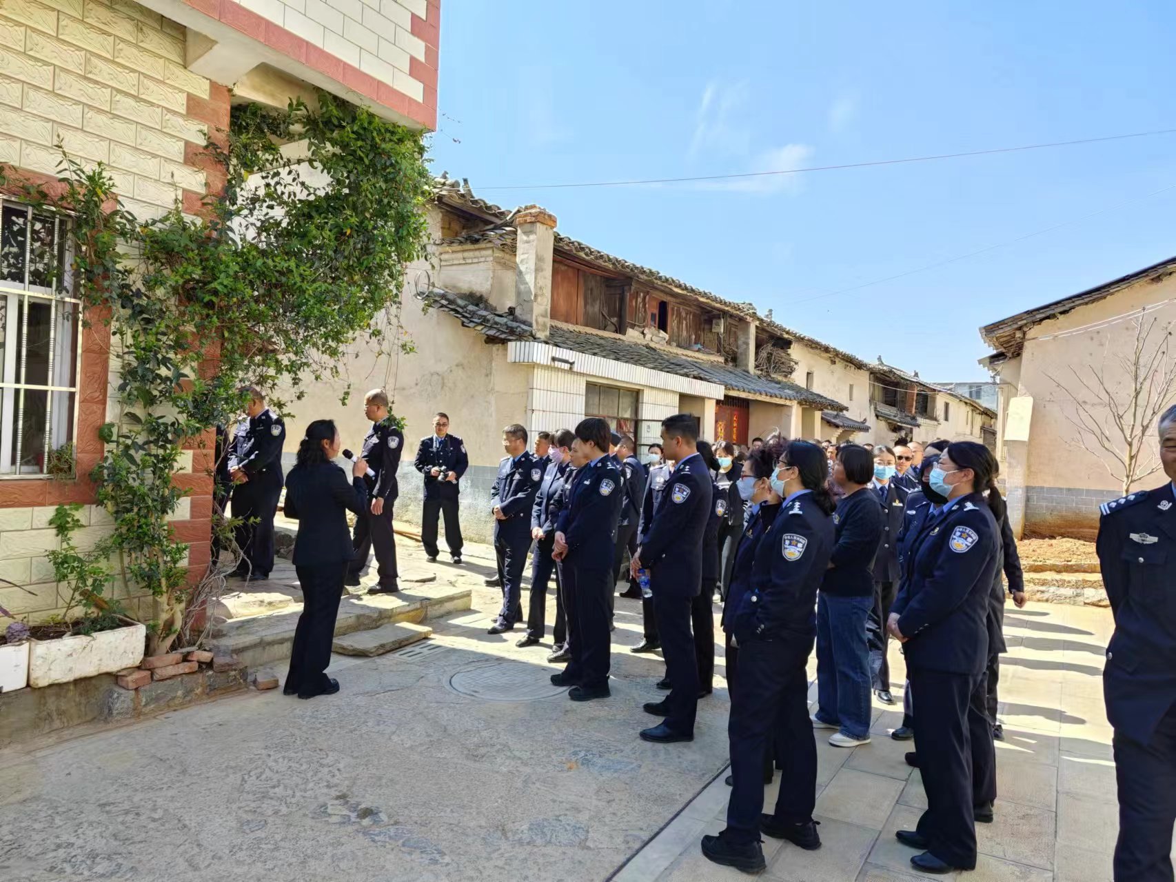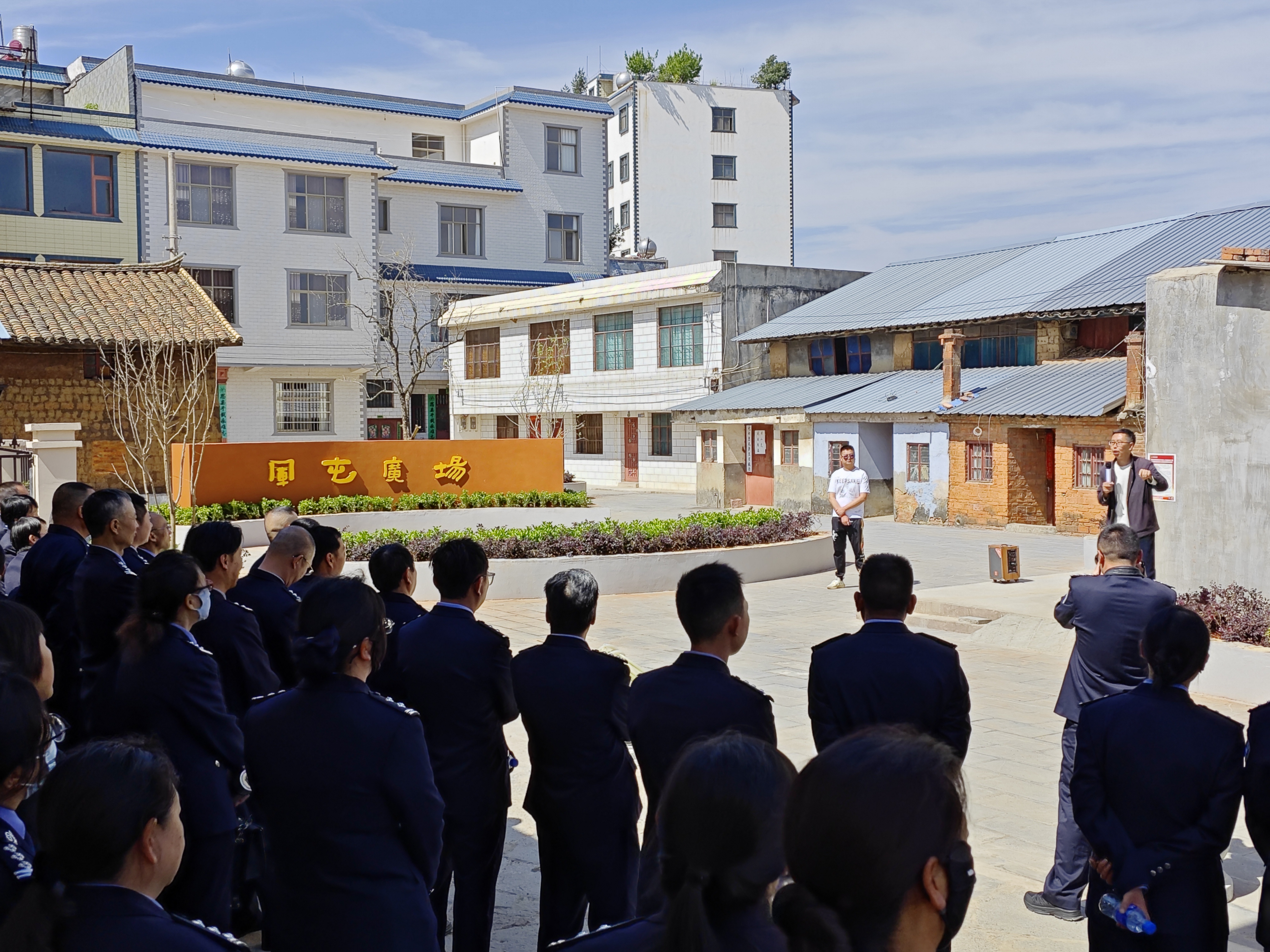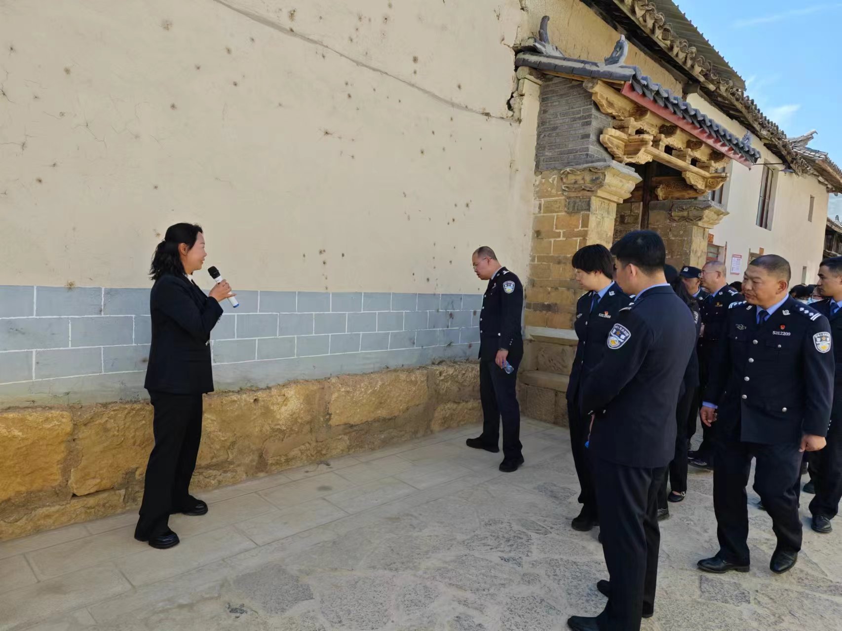 随后,云南省曲靖监狱警察来到五联社区三百户营村参观“曲靖红色文化第一村”,市委党校马中华老师首先对“曲靖红色文化第一村”作了总体简介,大家又来到三百户营村的主街道,看到了一批历史建筑和传统民居,如金耀曾、金述之故居、地下交通联络站、军屯广场、施药堂、红军过楼、天主教堂等。还有许多与红军长征有关的文物,如红军标语、红军当年取过水的古井等,以及为了纪念当年红军从此经过而命名为“红军过楼”的西过街楼。
