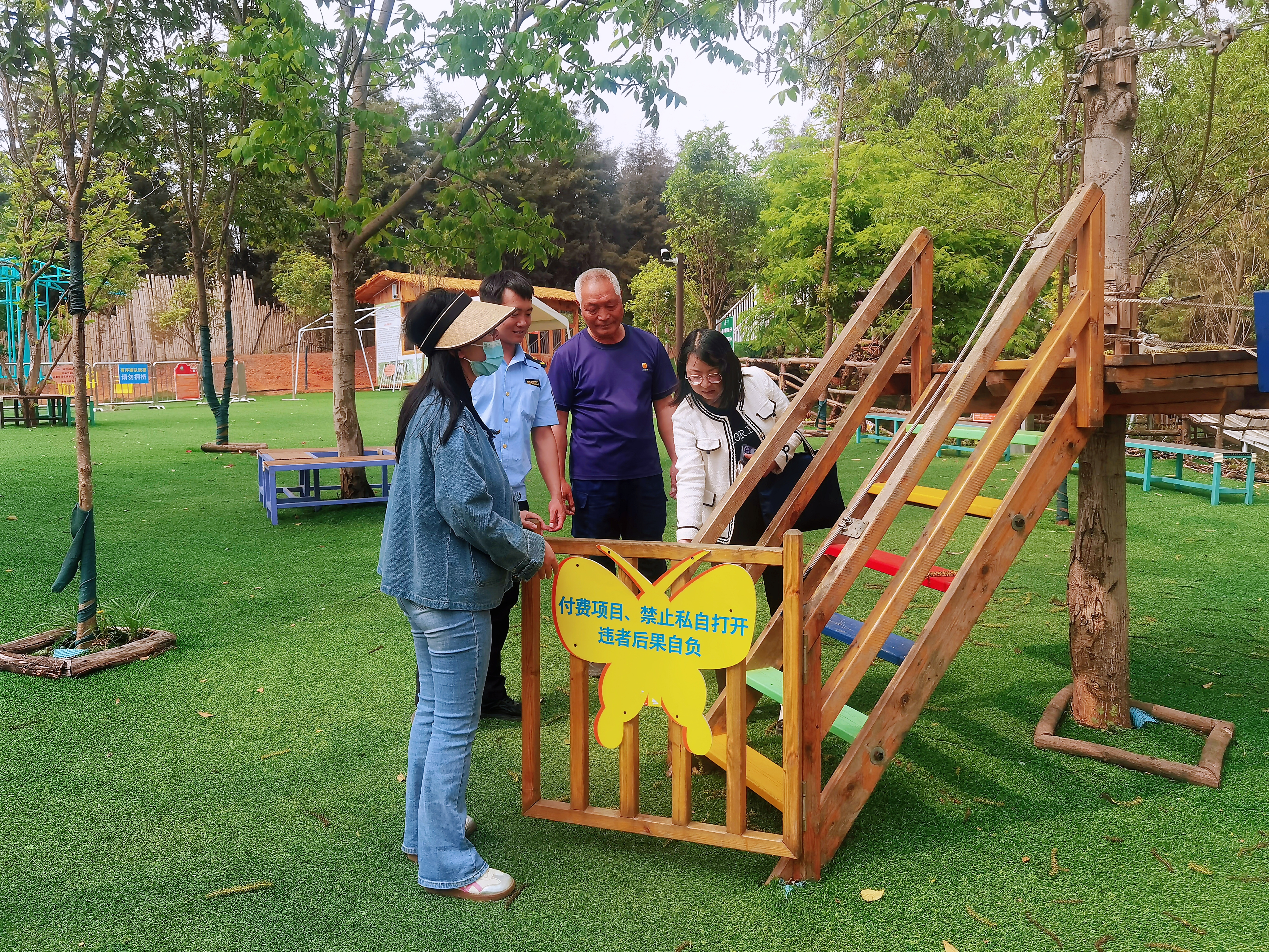 在对景区游乐设施的检查中,检查人员特别关注了设施的安全性能,仔细检查了旅游设施的安全状况,包括是否定期进行维护保养和检验检测。同时,对景区内的游玩设施、栏杆、台阶等基础设施的牢固性进行了细致的检查,确保没有破损、松动等安全隐患,并检查了是否在设备显眼位置设置了足够的安全警示标志标牌及明确告知游客游玩时的注意事项。通过这些措施,确保所有游乐设备均达到安全标准,运行正常,从而预防任何潜在的事故。