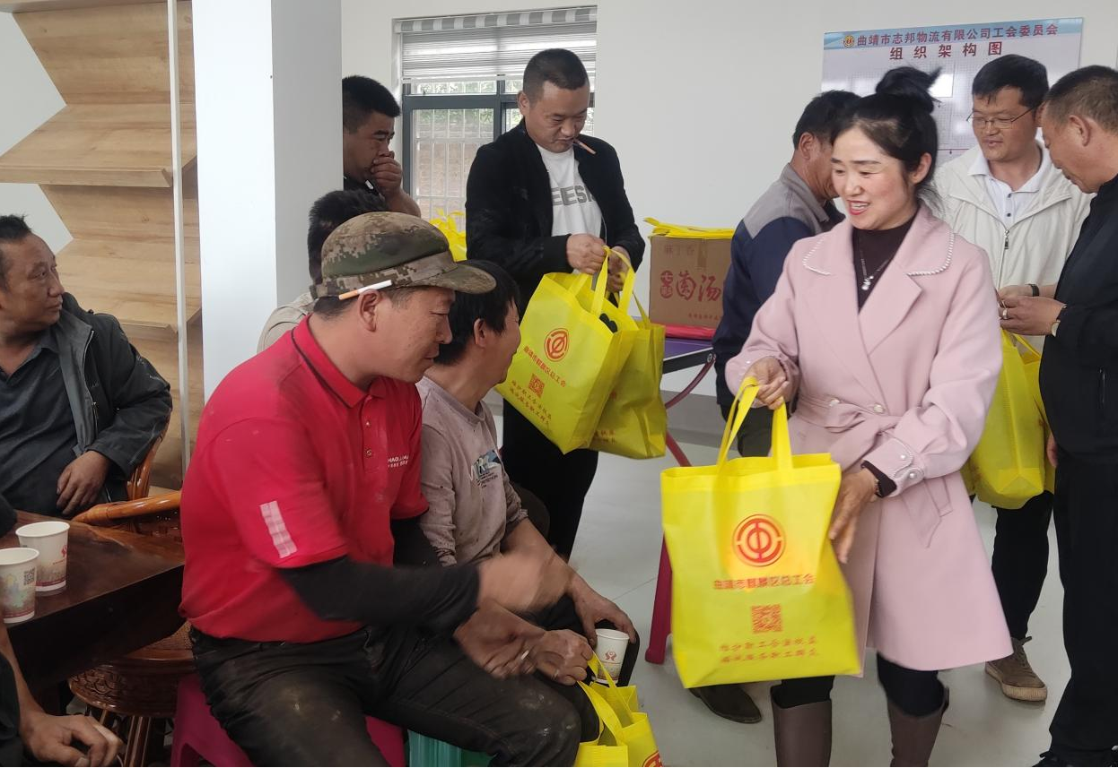为进一步加强对新就业形态劳动者的关心关爱,5月下旬,麒麟区总工会和三宝街道工会联合会在三宝辖区企业志邦物流有限公司开展货车司机大礼包发放活动,以暖心服务推动货车司机群体融入工会“大家庭”。
