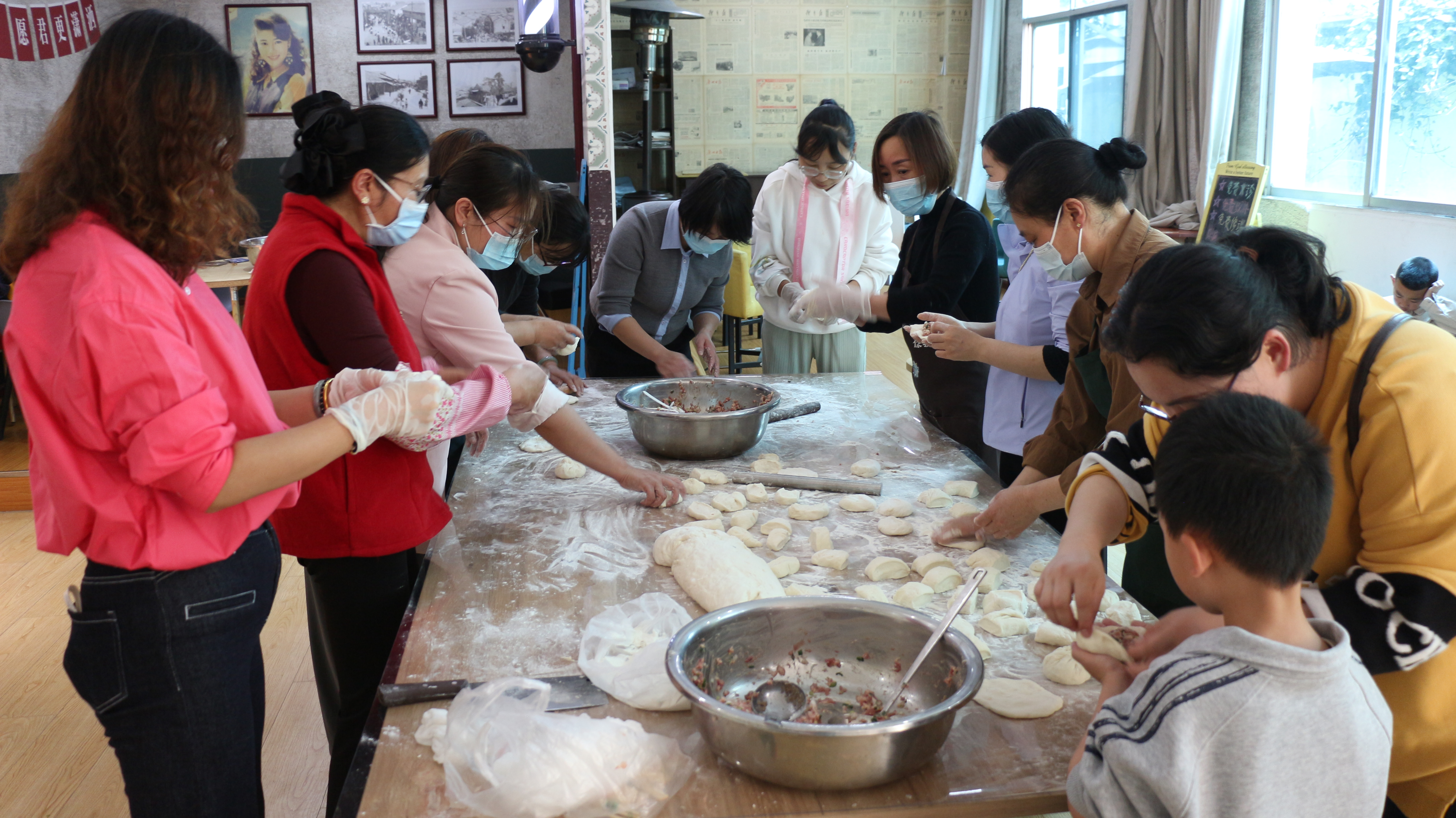 工作人员一大早便购买了所需食材和厨具,活动中,大家一起动手,经验丰富的阿姨们手法娴熟、初次尝试的年轻人和孩子们也兴致勃勃,面团在三十多双手里辗转,有的捏成柳叶褶,有的拍成圆饼状,歪歪扭扭的包子堆成小山,揭开蒸笼时齐齐鼓起,白雾里溢出豆沙、鲜肉的混合香味,热气还未散大家便大快朵颐起来。