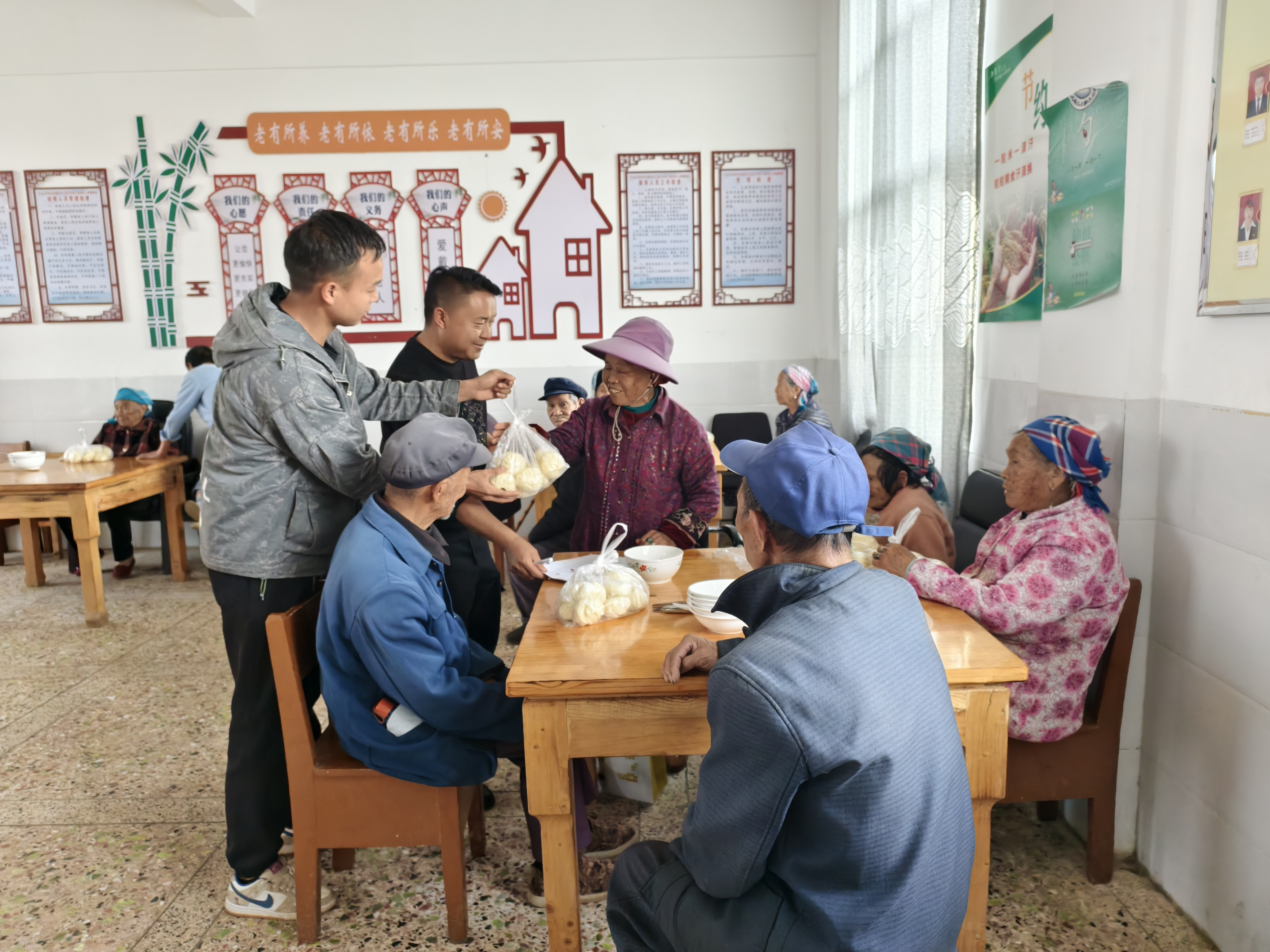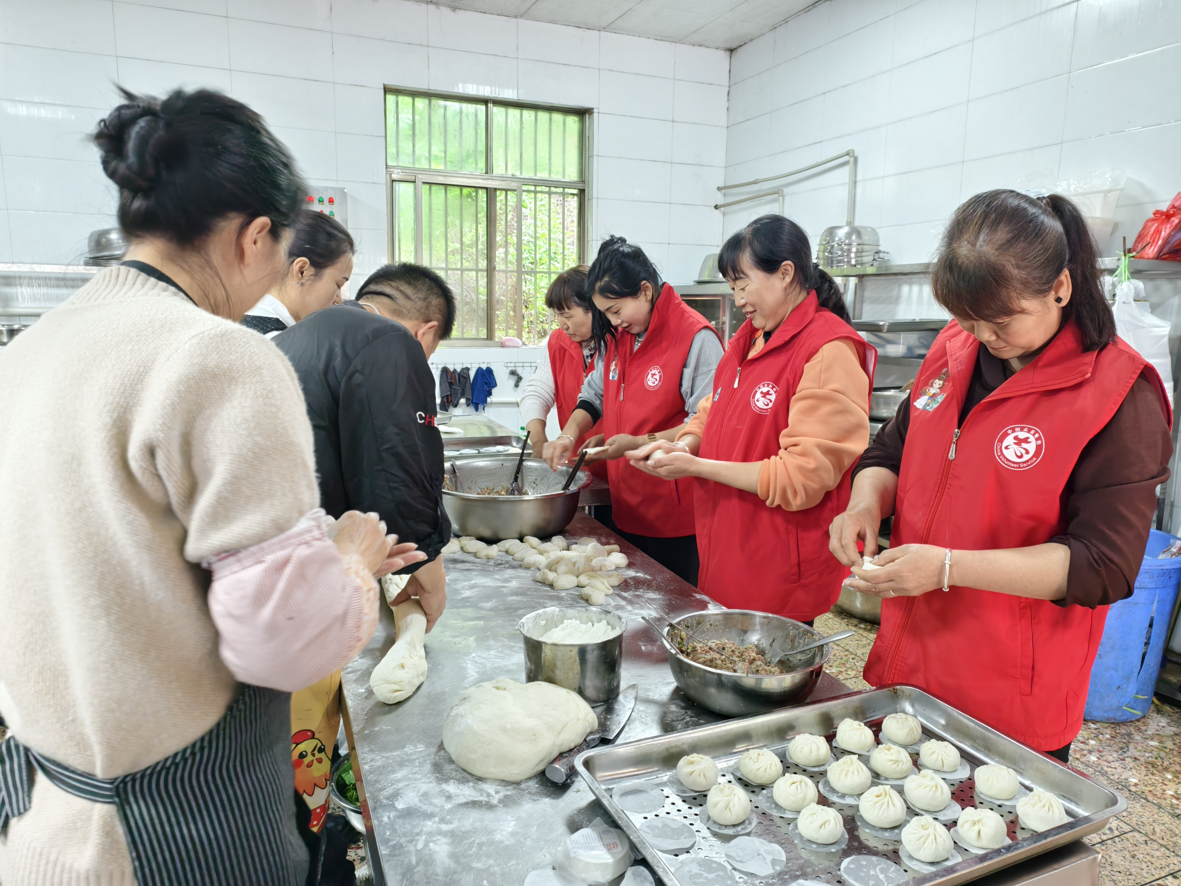 为弘扬中华民族敬老爱老的优良传统,端午节当天,兴龙村委会的志愿者们分工明确,和面、拌馅、捏褶,一起为辖区幸福餐桌的110余名老年人包包子。所有的包子包完蒸熟后,志愿者们用袋子分装,送到幸福餐桌并发放给老人。