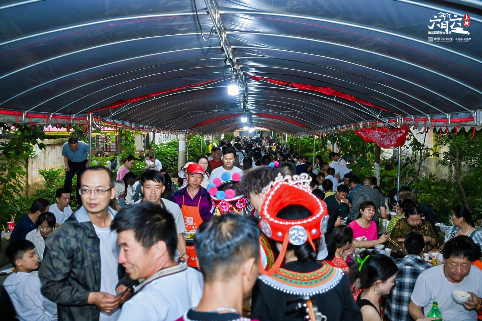 大街小巷化身为“舌尖上的民族团结长廊”。特色小吃一条街人头攒动,羊汤锅、羊肉串、舂鸡脚等传统美食香气四溢,吸引各族游客驻足品尝。羊肉用当地地方专用老酱、柴火大锅烹饪至熟,全村人邀请亲朋好友,一起享用,共同欢度这一年一度的“五谷节”。