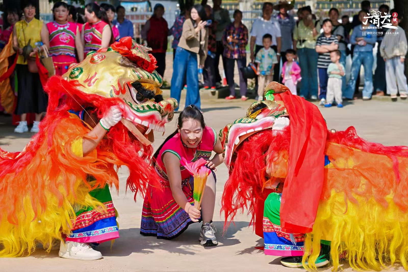 当天,上坡村委会文化长廊,游客与当地群众早早聚集,翘首以盼。随着主持人宣布活动开幕,锣鼓声震天响起,全体人员载歌载舞,舞龙舞狮、竹竿舞、踩高跷轮番上演,优美的舞姿、诙谐幽默的乡村温情,点燃了现场的热烈氛围,富有地方特色的精彩节目赢得了现场观众的阵阵掌声。