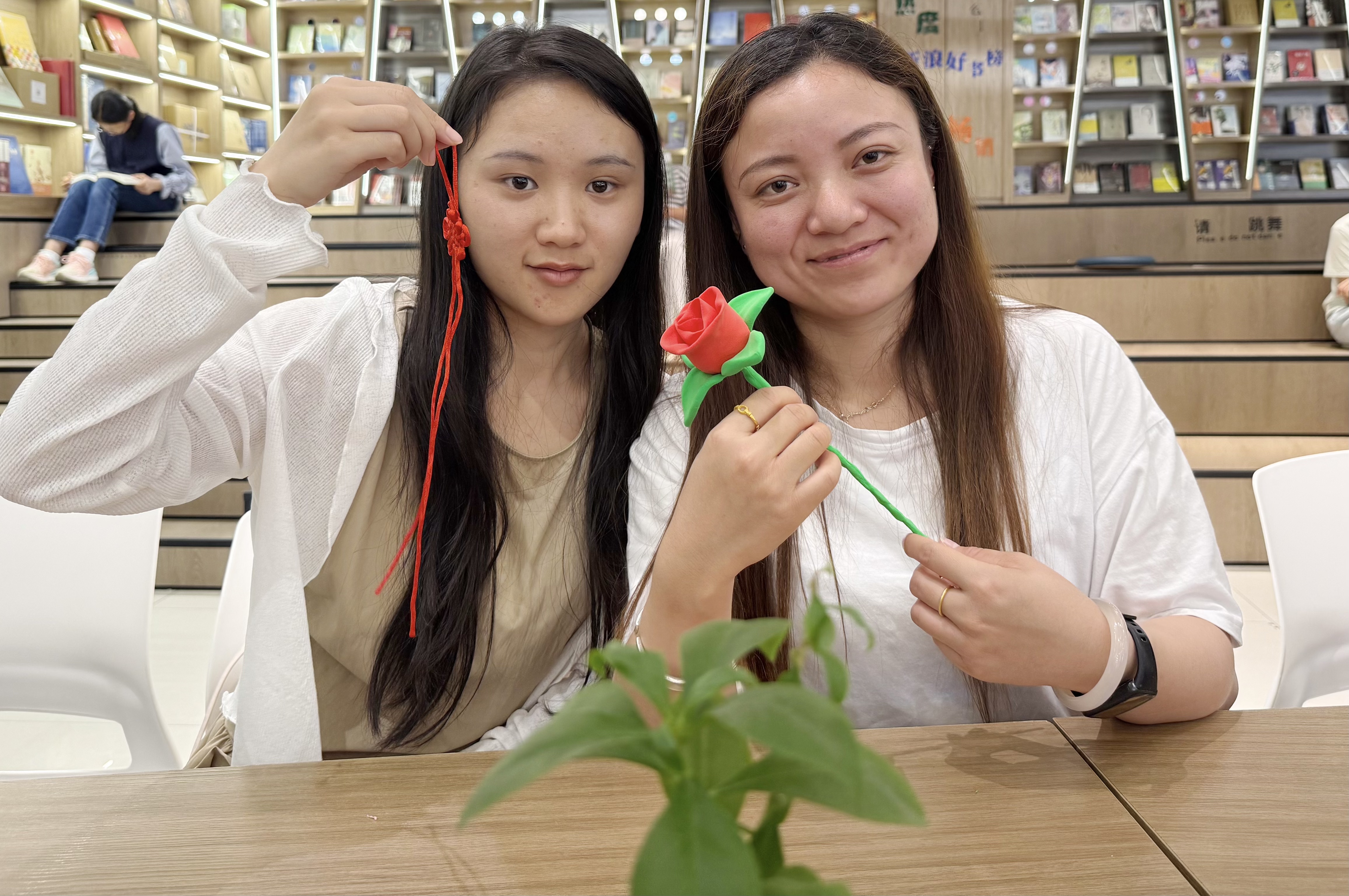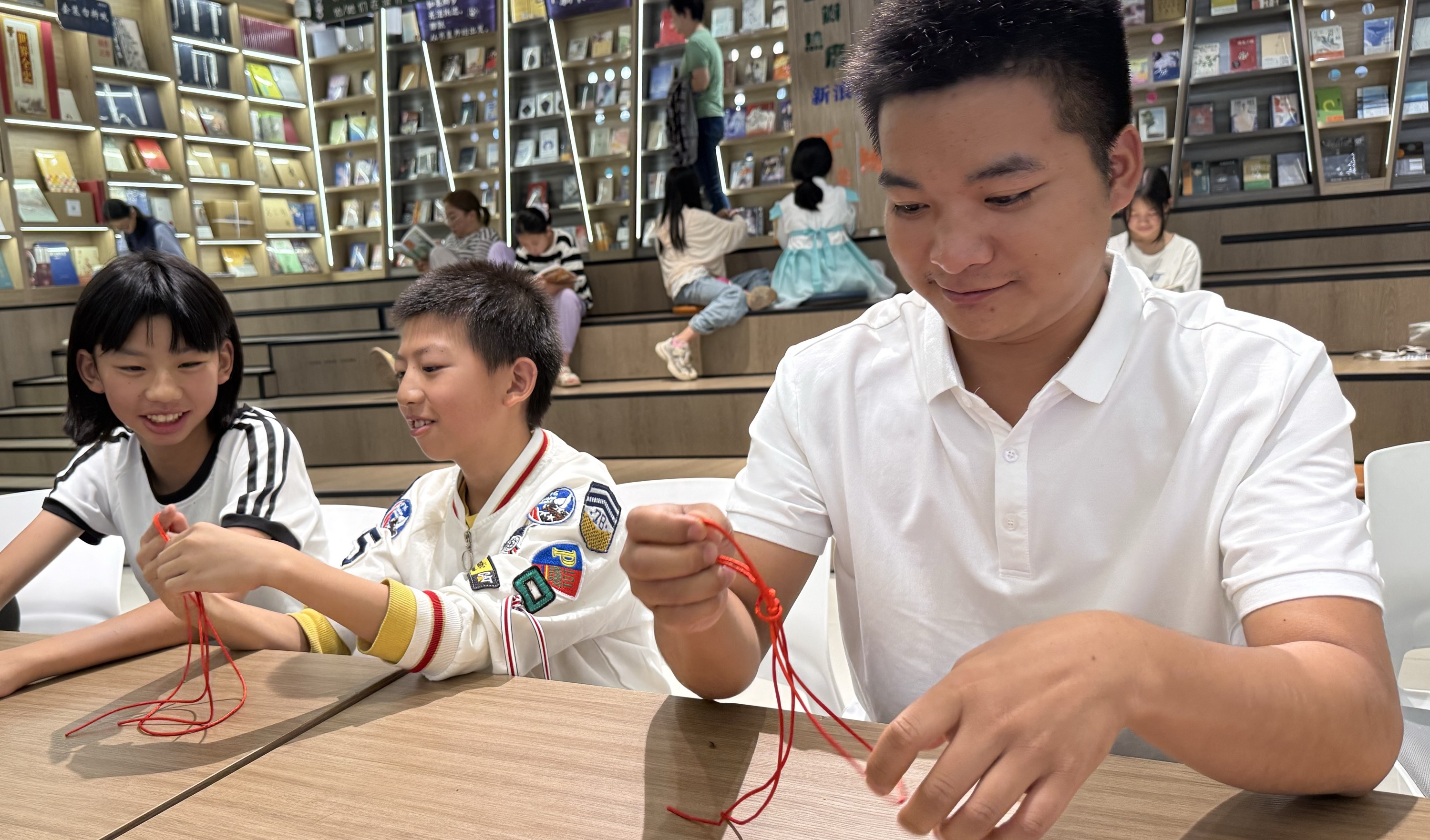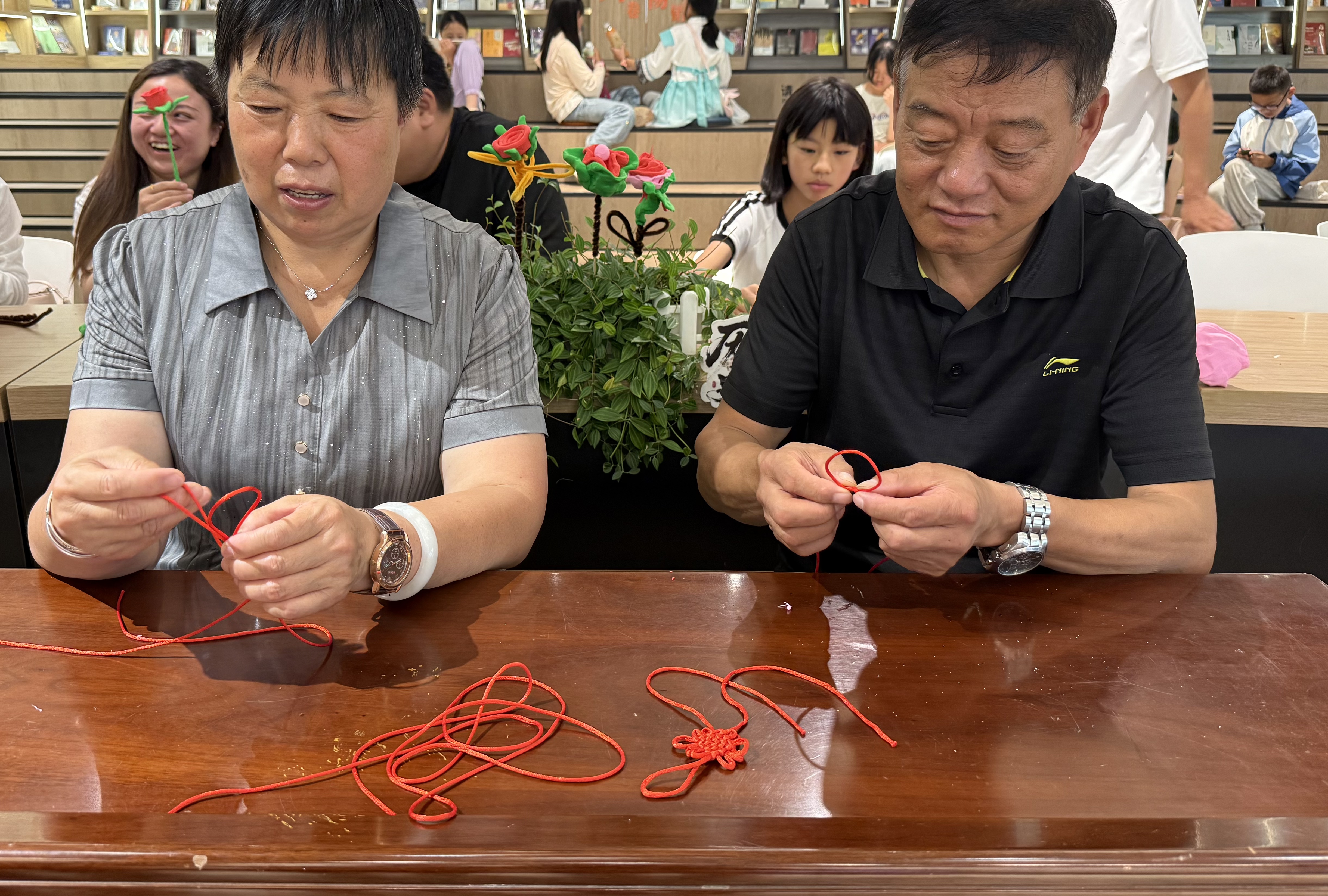 传统技艺,编织爱国情怀。居民们以“中国红”为主色调,动手制作中国结。活动中,志愿者将传统技艺与抗战元素相结合,指导大家编织“五角星结”“长城结”等特色作品。居民们手持亲手完成的中国结合影留念,红绳交织间凝聚着对祖国的祝福。活动现场还设置了“红色心愿墙”,参与者写下“强国有我”“传承红色基因”等寄语,形成了一道亮丽的文化风景线。